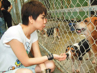 Ella为过世的爱犬做公益,送捐款到流浪动物之家。