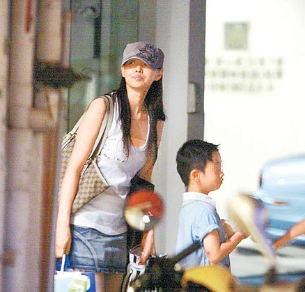 伊能静带儿子小哈利逛街。