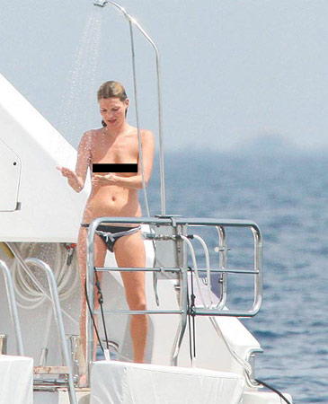 图文:超模凯特·摩丝裸上身甲板冲凉