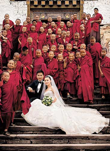 还有梁刘两人赞助宾客食宿机票“最慷慨”;此外这次婚礼也是“最皇家”,因为不丹国王基沙尔都亲自接见还安排他们在皇宫拍婚纱照,皇叔皇妃还出借皇室礼服,再加上高僧喇嘛祈福,真的是婚礼最皇家。