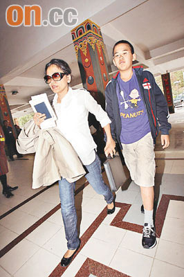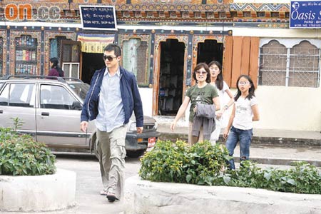 王家卫昨日与太太及儿子离开不丹。图片均来自香港《太阳报》。