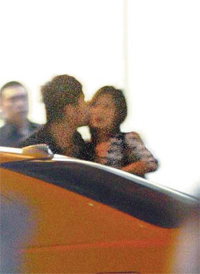 李进良和长腿妹动作十分亲昵。