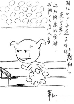 中新网8月20日电 “飞人”刘翔前天(18日)在北京奥运110米栏预赛中临时宣布脚伤退赛,引起各界关注,他在演艺圈有不少支持者,包括陈慧琳、古巨基、胡彦斌和S.H.E都表示遗憾,刘德华(华仔)还画了漫画鼓励刘翔:“我们13亿人看你的健康比金牌更重要,别伤心,永远支持你。”