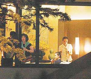 前晚7时左右,记者便目击嘉玲着便服楼上楼下到处张罗,她生性好客、事必躬亲,先是招呼友人在2楼饭厅用餐,后来又领着他们到1楼客厅喝红酒、看电视转播,嫌现场友人不够多,她又打电话给友人有说有笑,晚间9时多闭幕式结束后,一行人直到深夜才离去。