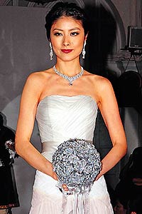陈慧琳日前为拍广告而大试婚纱造型,这款白色婚纱最引人注目。
