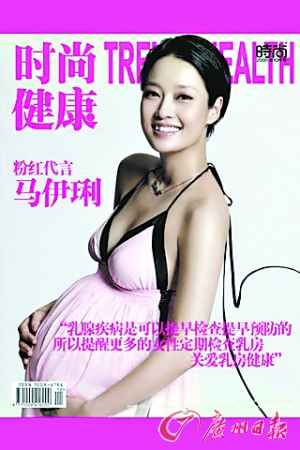 马伊琍在生下千金前,为某杂志拍摄公益广告。