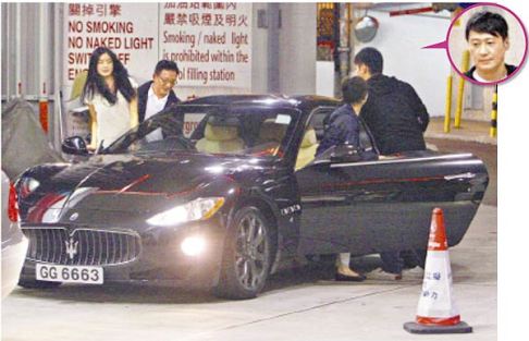 乐基儿(左)昨驾着黎明送她的跑车到加油站加油,他(右)则坐后座当乘客。