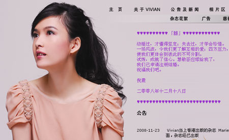 周慧敏个人官网证实喜讯。