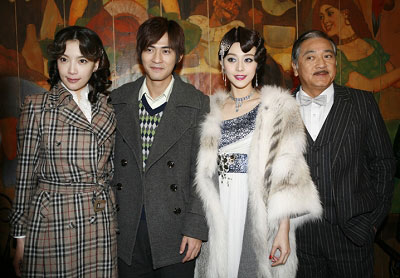 范冰冰担任制片人的第二部电视剧《金大班的最后一夜》正在上海热拍,剧组昨日在杨浦区的一栋洋房内组织媒体探班,范冰冰偕男主角周渝民、方中信、黄少祺、秦沛等以剧中造型出现在媒体面前。在采访中,老板兼演员的范冰冰以及首次出演年代戏的仔仔周渝民成为媒体关注的焦点,两人表现出“相见恨晚”的样子,难怪仔仔最后被问到是否会与大S复和的消息,仔仔很肯定地说:“没有”。