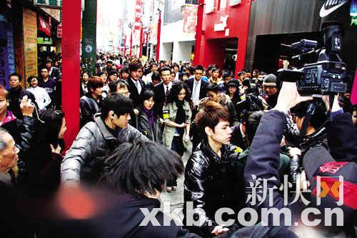 由于大批围观人群逼爆现场,所以大会除了用铁栏杆隔出3米的距离让阿娇受访,还出动十名保安及三十多位工作人员“护娇”,更筑起三道人墙前后将阿娇包围。阿娇不断强调台湾的Fans让她备感温暖,并向Fans温情“喊话”,感谢他们的不离不弃,“希望大家逆境自强、永不妥协,困难时不要放弃希望。你们(歌迷)的一举一动都给我很大力量,我唯一可以回报的就是坚强面对。”随后她在巨型布景板上写下“坚强、努力”两词。阿娇说,两个月前她曾悄悄和阿Sa到台湾度假,还透露早些年因有人挑拨离间,导致自己和阿Sa没那么亲近,两人一起来台湾后,心结全消。