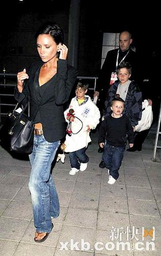 最近有传闻说和婆婆因为孩子的问题产生不和的维多利亚,3月28日带着自己的3个儿子前去球场为老公贝克汉姆助阵。当天的维多利亚身穿黑色的西装外套,下面穿了条肥大的牛仔裤,而令人惊奇的是,她居然没有穿高跟鞋,而是换了双平底的拖鞋,很是少见。