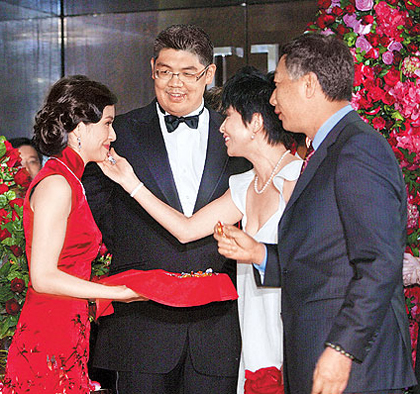 中新网1月24日电 台湾首富郭台铭与刘嘉玲前晚联袂出席连胜文、蔡依珊婚礼,离去后又一起到台北中华路“钱柜”欢唱KTV,玩到凌晨3时许才由郭台铭送刘嘉玲回她下榻的西华饭店。两人高调的友情难道不怕刘嘉玲男友梁朝伟吃醋?她回答:“不会吧,我们都是大人了。”记者昨问她是否有可能与首富变成男女朋友?她笑得尴尬对问题充耳不闻,仅说:“不回答! bye-bye!”