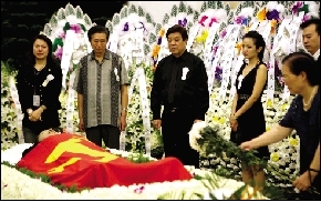 罗京的灵柩上覆盖着党旗,被抬入殡仪馆的途中,人群中不时有人轻声送别,“罗京一路走好”“罗京我爱你”,听了让人动容。