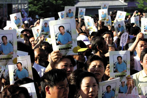 在哀乐声中,不少群众流下了眼泪,有的女性观众当场呜咽着说:“罗京一路走好!一路走好!”声音极度悲戚。罗京的哥哥手捧遗像送了弟弟最后一程。整个过程中,罗京的哥哥一语未发,双目无神,表情悲痛,由于过于伤悲,这位中年人竟已捧不住手中那并不十分沉重的遗像,而是由俩位亲友一直在一左一右用力搀扶才能前行。