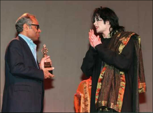 印度前总统科奇里尔·纳拉亚南为迈克尔·杰克逊颁奖