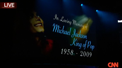 中新网7月8日电 CNN消息,斯台普斯中心杰克逊公众追思会现场大屏幕。