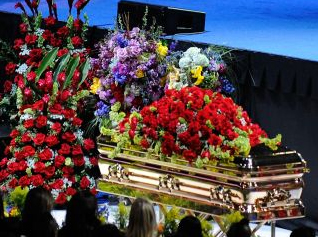 “今日新闻“消息,杰克逊的私人葬礼当地时间7日在洛杉矶举行,流行天王的棺木造价高达2万5千美元,在铜棺上镀了14K金,上面覆盖大红色的鲜花。不过即使举行过葬礼,依旧谣言四起,有传闻说杰克逊的遗体根本不在棺木里,一名电视台记者报导,“我只说这是棺木,因为遗体在不在里面?目前还不确定。”