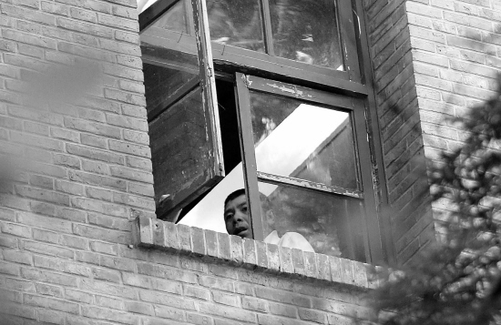 昨天的戏在之江校区3号楼里拍。这是一幢红砖老建筑,也是20多幢历史悠久的老建筑中的一座,原是学校的实验室。早上8点开始,剧组工作人员就开始为拍摄忙碌。楼后面的空地上树起了一块巨大的反光布,随后从三楼的窗户中慢慢伸出几根绳子,绳子上绑着一块由数十根日光灯组成的“照明板”。只见“照明板”被拉紧的绳索巧妙地固定在了墙上。这过程没有敲击红砖墙,更没有用一颗钉子。照明设备布置好了,具体的拍摄点也就随之暴露了。张静初的宿舍就在3号楼的二楼。