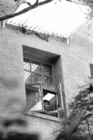 “照明板”不用钉子被巧妙地固定在3号楼后墙上。