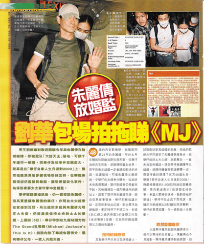 11月5日,刘德华(华仔)带父母和朱丽倩包场看迈克尔·杰克逊的纪录片《This Is It》,一家人共享天伦之乐。