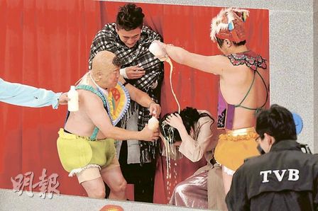 郭羡妮惨被曾志伟等其他明星用颜料兜淋头,没有反抗能力
