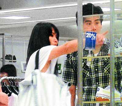 7月中,彭于晏(右)和方脸妹曾被目击逛街挑鞋,互动亲密。
