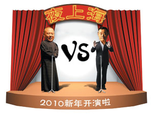 2010年1月,有“北郭南周”之称的笑星郭德纲和周立波,将在上海演出市场上交锋。明晚,“北方人”郭德纲将在上海体育馆“先发制人”。