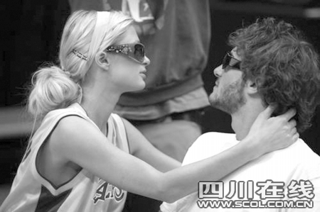 希尔顿和男友把球场当秀场