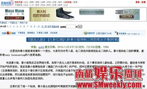 直到1月25日,一篇细节丰富、内容翔实的帖子才算给出了答案。这篇名为“八卦章小姐和赵二妈的那点子事”的帖子煌煌数万言,以海归网论坛为起点,迅速传遍中文网络的大小论坛,甚至被一些传统媒体节录转载。该帖还原了泼墨事件的来龙去脉,追本溯源,逻辑清晰,行文顺畅,对中美两国上流社会的大量背景故事娓娓道来,并将诸多人物的恩怨关系梳理一清,靠谱程度远甚一般的所谓“爆料”,令网友大呼过瘾,并将其定性为“迄今为止看过的最有分量的八卦帖”。