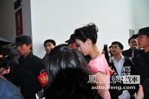 粉色裙装清纯亮相 浓重妆容难掩疲态(图)