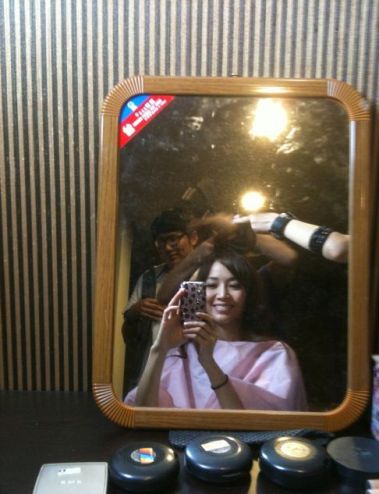 侯佩岑客串流星花园制作人冯家瑞的新戏,正在化妆