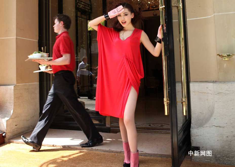 巩新亮在法国巴黎雅典娜广场酒店门前拍摄的时装大片,一身红衣,玲珑曲线身材凹凸有致,令人着迷。
