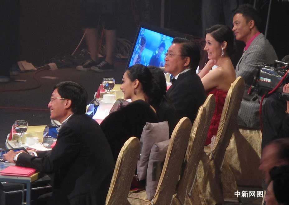 图为:本届港姐决赛五位评判(由远至近):艺人任达华、李嘉欣、立法会议员林健锋、奥运体操冠军刘璇、太平绅士林天福。(摄影:余瑞东)