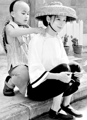 徐若瑄说,导演讲戏就把她讲哭了,所以连剧本都没有看就决定接拍《少年星海》。“我喜欢特别挑选有挑战的角色,我很贪心,希望每一个角色都有困难,能够让我去挑战自己。我出道20年,演戏、主持、唱歌、写歌,瞎忙活了一阵,最后终于发现我真正喜欢的是演戏,所以遇到好角色我一定尽力去演,根本不会顾虑到形象等问题。演《少年星海》的挑战很大,不仅因为我没有演过母亲,而且关于冼星海母亲的介绍资料很少,我做了很多功课,看了很多关于母亲的电影,想借电影来帮我找感觉,比如安吉丽娜·朱莉的《调包婴儿》。给冼星海剪辫子的那场戏我借鉴了《末代皇帝》,虽然一个是在巨大的紫禁城,一个是贫穷的一家人,但因为时代是一样的,我想那时候人的心态应该是有相似之处的。”除了看电影之外,徐若瑄还大量听冼星海的音乐,希望从音乐中得到与人物的共鸣。