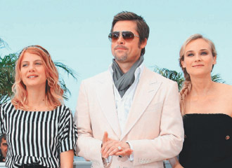 中新网5月21日电 据台湾《联合报》报道,布拉德·皮特与安吉丽娜·茱莉19日抵达戛纳,两人以共进晚餐的实际行动破除情变传闻,20日中午皮特则与黛安·克鲁格等一起现身昆丁塔伦提诺新片“无良杂种”记者会。