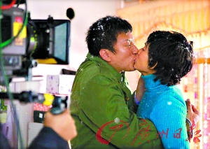经历了《赤壁》中与梁朝伟大尺度上演激情戏码,林志玲此番遭遇孙红雷,可谓是驾轻就熟,手到擒来。或许是受到了电影中春娘这一角色火辣性格的影响,林志玲与孙红雷的这段热吻,也颇有几分“管他三七二十一”的气势。据导演李蔚然表示,其实原本的剧本中是没有这段吻戏的,只是单纯地想要烘托出两人吵架愈演愈烈的情景,但在拍摄过程中,两人吵得无论多卖力,总感觉少了点什么,直到导演突发奇想,设计以一段强吻的戏令争执戛然而止。而两位演员也以百分百的默契程度大秀吻技,没想到最终呈现的效果出人意料的好,将整段剧情和两人之间的关系推向了一个高潮。 (星星)