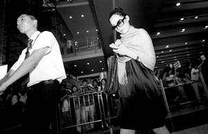 昨天下午2点多,记者在航站楼等待中国游泳队回国时,发现了一位星味十足的女子走出国际出口。