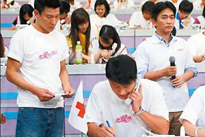 据“联合早报”消息,香港演艺圈为了帮助台湾受灾民众尽快重建家园,积极动员,与台湾艺人联手举办《88水灾关爱行动》。刘德华水灾后第一时间飞抵台湾赈灾,返港后更是召集200位艺人,赶工录制“88水灾关爱行动”主题曲《滔滔千里心》。担任总召的他,一下飞机便直奔活动现场,强打精神紧盯各个环节,不但亲手写大字报,更扯破喉咙指挥全场。