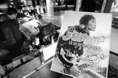 记者上午在星光现场看到,两张陈琳的巨幅照片悬挂在舞台上,台前用将近一千朵菊花和百合花装点成心形图案。舞台正对着的最后面,是陈琳生前发过的专辑的展区,供歌迷悼念。