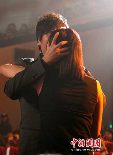 中新网4月12日电 4月11日晚,蒙牛酸酸乳音乐风云榜十年盛典再回深圳盘点华语乐坛新世纪十年。本届颁奖星光熠熠,那英、陈奕迅、莫文蔚等华语乐坛大腕纷纷登场。本届盛典评委会主席那英在活动接近尾声时荣获“十年最具影响力音乐人物”大奖,在现场言辞激动甚至动情落泪,并和孙楠互相亲吻。
