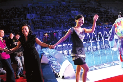 编剧兰晓龙率《士兵突击》原班人马上台,主创们把水立方当作钢七连的训练场,喊出“不抛弃、不放弃”的口号。记者赵楠楠
