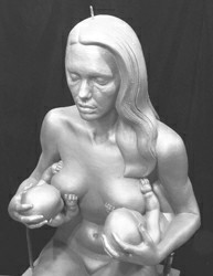 这座雕塑是朱莉在给一对双胞胎喂奶的裸体坐像,作者为纽约艺术家丹尼尔·爱德华兹。雕塑将于9月11日在俄克拉何马州诺曼市MAINSITE当代艺术馆亮相。