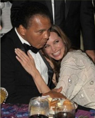 夫妇两人与乔治‧克鲁尼情侣同桌,跟老牌帅哥寒喧一下,朱莉立刻转向了年迈的拳王阿里。阿里是1960年奥运会拳击金牌得主,他创造了拳击界不老的传奇,朱莉夫妇都是他的忠实粉丝。