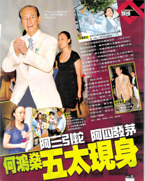 四太太从此被何鸿燊冷落,而郑詠诗得宠指数则有增无减。去年开始,她不用再做看护工作,名正言顺成了五太太。最近何鸿燊病危入院,郑詠诗想去医院探望他,但被三太太和四太太阻止,由于郑詠诗在何家势单力薄,故未能到医院探望赌王。(阿文)