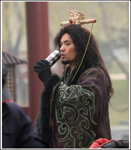吕良伟先结束了自己戏份,记者见缝插针,和他聊了起来。吕良伟说:“纣王是个残暴的昏君,这和我以前扮演的角色有很大区别,我觉得这是对自己的一大挑战。”记者让他评价一下搭档林心如,他呵呵一笑:“她很漂亮啊,我和她配戏很来电。”