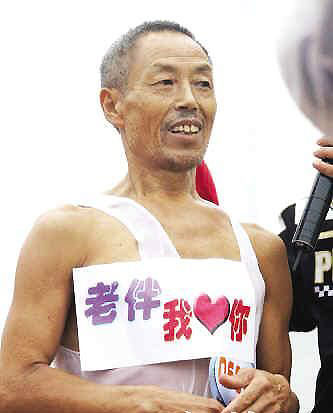 最温情选手:重庆罗大爷借参加比赛向恋人示爱的选手很多,但没有一个比来自四川重庆的罗大爷更让人震撼。他身贴“老伴我爱你”的字样参与《智勇大冲关》,面对镜头对电视机前的老伴喊道:“老伴,我爱你。”质朴而真挚的语言赢得了现场观众热烈的掌声,也感动了电视机前的观众,被一致推选为最令人感动的温情选手。 (易哲)