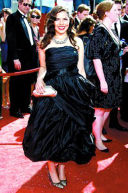 电影大明星、监制迷你剧集《约翰·亚当斯》获提名的汤姆·汉克斯也同夫人一同现身红毯,凭借《伯纳德与桃瑞丝》获提名的苏珊·萨兰登也让红毯“星味”大增。去年斩获艾美奖喜剧类最佳女主角的“丑女”亚美莉卡·弗雷拉一直深受观众喜爱,但今年的她胖了很多,一身并不合体的黑裙让人实在不敢恭维,相比《丑女贝蒂》中的配角维妮莎·威廉姆斯一身山水画风情的长裙黯然失色,只不过“贝蒂”更具喜剧效果。