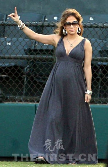 虽已有身孕,但为了令丈夫开心,詹妮弗·洛佩兹还是陪丈夫现身棒球场观看比赛,为球员打气助威。