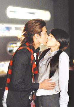 贺军翔和Hebe的第一场吻戏竟是强吻,Hebe说:“当时我很紧张,吻的一剎那,还真被吓了一跳!”这场戏一次OK,原来贺军翔不但爱亲美女,也早就有过强吻经验,念幼儿园时喜欢一个女生,放学后一起坐娃娃车,他就去亲她,结果还被老师打屁股。