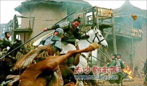 《赤壁》剧组日前向媒体披露,片中扮演赵云的胡军在拍摄中曾坠马受重伤,在病床上躺了近一个月后才返回剧组。低调的胡军向记者承认此事,并乐观地表示受伤难以避免:“伤好以后我就带了一个按摩师一起回剧组,为大家都带来了福利。”